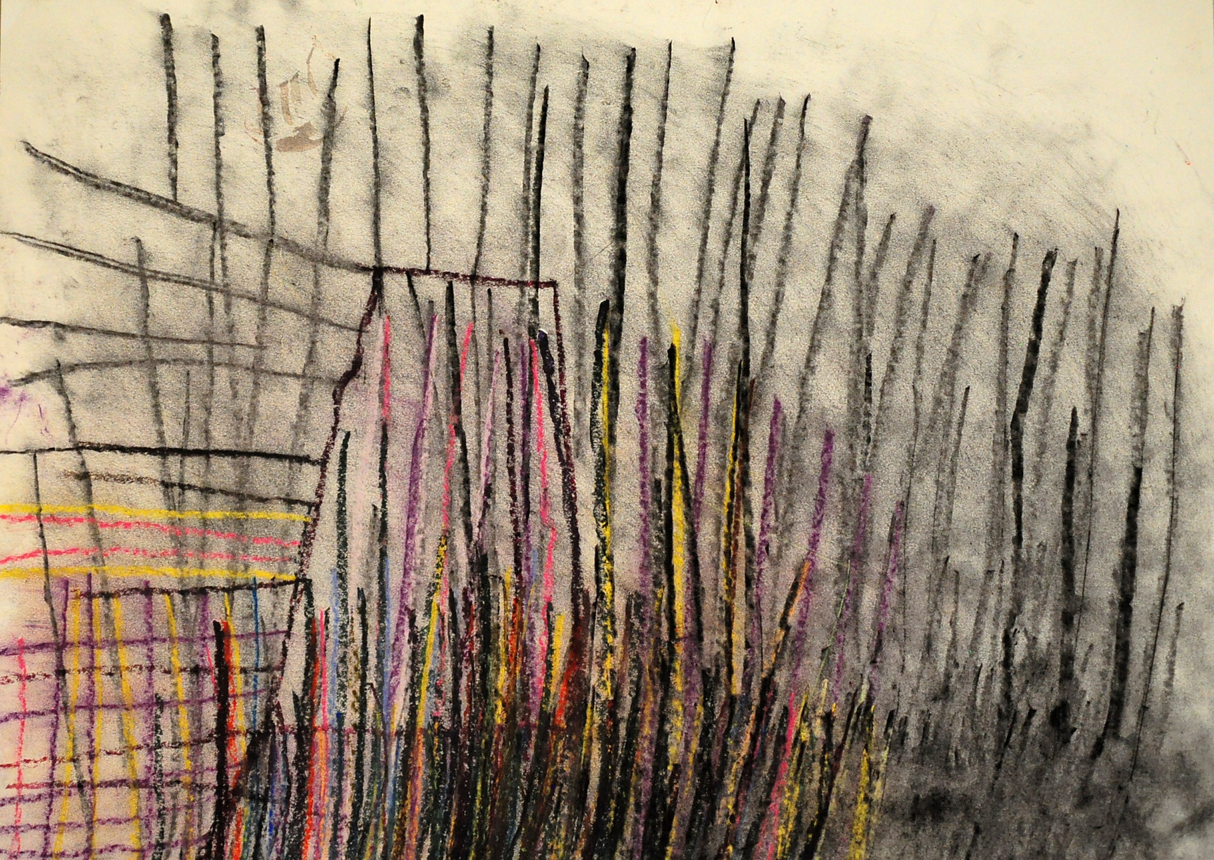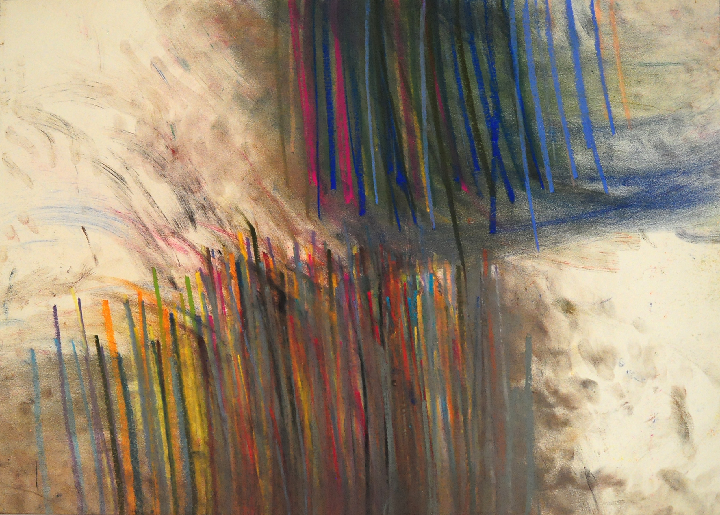 Klaus Zelmer usually works with figural motifs. His abstract drawings of intense colour scale, executed in oil pastel, resemble the landscapes by Nicolas de Staël. Their dramatic structure results from contrasting painterly surfaces and energetic drawn strokes.