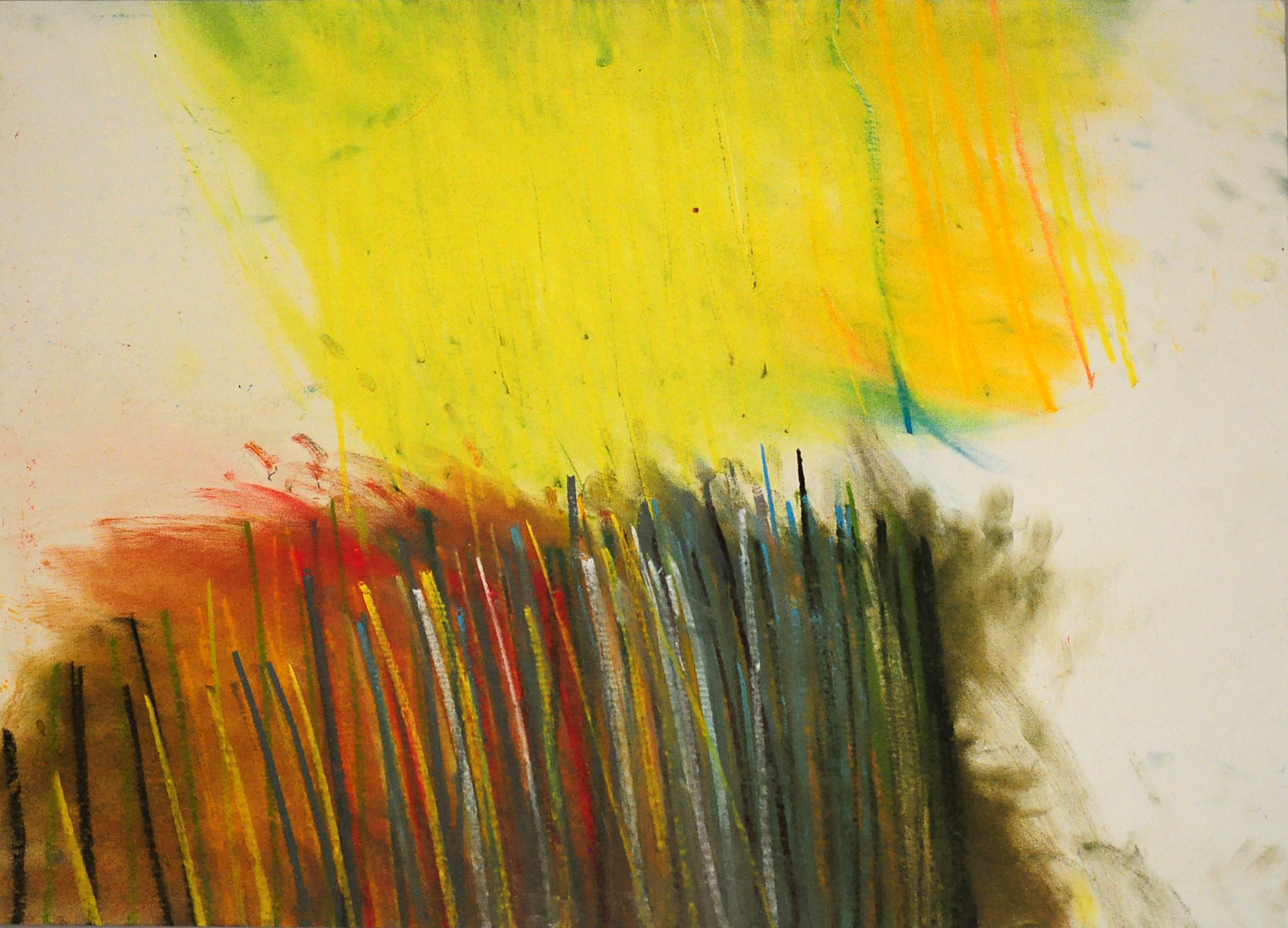 Curt-Raoul Brkovic employs wax pastel to cover his paper with countless dense strokes constantly following the same direction. The result is coats of colours that, nevertheless, reveal the bottom layers. His work is thus imbued by the element of light, also characteristic of his watercolours.